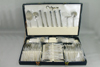 ソースレードル16.6cm(1本)サービススプーン21.1cm(1本)サービスフォーク21.1cm(1本)ナイフ21.1cm(5本)フォーク18.5cm(5本)スプーン17.8cm(5本)スープスプーン18cm(5本)ティースプーン18cm(5本)ケーキフォーク13.6cm(2本)コーヒースプーン11.6cm(2本)ヒメフォーク11.8cm(2本) 素材:18-8ステンスレス製  箱の状態:薄汚れあり 売り切れました
