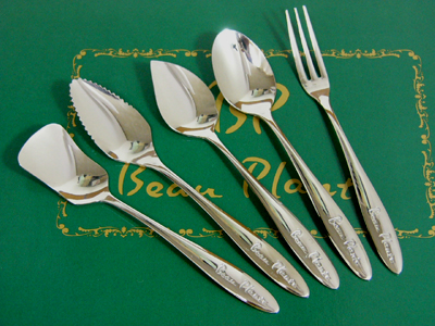 ティースプーン5本、フルーツフォーク5本、バターナイフ1本、シュガースプーン1本の合計12ピースセットです。