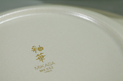 MIKASAのスープ皿5枚セットです。マットなアイボリーホワイトの地に、金彩と色絵による花もようがデザインされています。独特な釉調が美しい、雅な雰囲気を醸し出すお皿です。スープ以外にもいろいろ使えそうです。