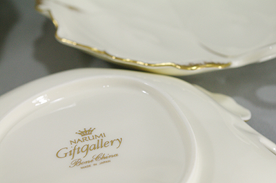 ナルミのリーフボール大1客、小2客のセットです。葉っぱをモチーフに、金彩で彩られたとてもおしゃれな器です。アイディア次第でいろいろ用途が広がりそう。高品質磁器ナルミ・ボーンチャイナ製。