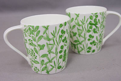 ナルミのマグカップ2客セットです。高品質磁器ナルミボーンチャイナ製。グリーンのリーフ模様を施したナチュラルテイストなマグカップです。
