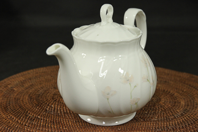 ノリタケのティーポットです。可憐な花の絵柄を配したティーポットです。高級磁器ボーンチャイナ製です。